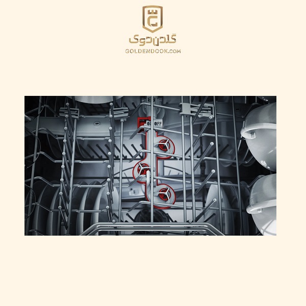 نمایشگر مستطیلی لمسی که در بخش بالایی درب قرار گرفته، اطلاعاتی مانند زمان باقی‌مانده شستشو و وضعیت برنامه انتخابی را نمایش می‌دهد. طراحی ساده و مینیمال پنل، کاربری آسانی ایجاد کرده و انتخاب برنامه‌ها را سریع و دقیق می‌کند. فضای داخلی شامل سه سبد مقاوم از جنس استیل ضدزنگ است که در برابر رطوبت تغییر شکل نمی‌دهند. این سبدها قابلیت تنظیم ارتفاع دارند و امکان چیدمان انواع ظروف کوچک و بزرگ را فراهم می‌کنند؛ از اقلام ریز مانند قاشق و چنگال گرفته تا قابلمه‌های حجیم.