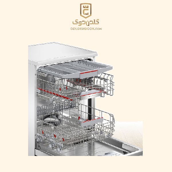 ماشین ظرفشویی بوش مدل SMS6ZCI08Q یکی از محصولات سری 6 بوش و ساخت آلمان است که با تکیه بر فناوری‌های روز و کیفیت مهندسی دقیق، تجربه‌ای مطمئن و حرفه‌ای از شستشوی ظروف ارائه می‌دهد. بدنه استیل مقاوم و طراحی مدرن آن به‌راحتی با انواع دکوراسیون آشپزخانه هماهنگ می‌شود و جلوه‌ای منظم و حرفه‌ای به فضا می‌بخشد. درب دستگاه تا زاویه 90 درجه باز می‌شود تا دسترسی به سبدها آسان باشد و جابه‌جایی ظروف بدون محدودیت انجام گیرد.