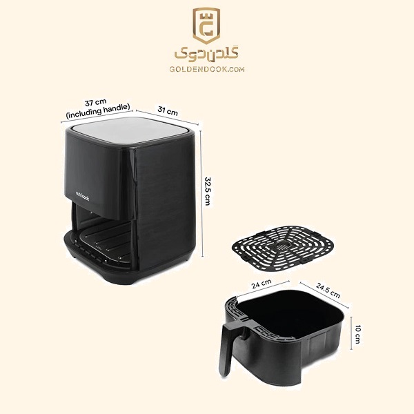 بدنه دستگاه از ترکیب پلاستیک مقاوم و فلز با رنگ مشکی و نقرهای ساخته شده که ظاهری شیک و هماهنگ با آشپزخانههای مدرن ایجاد میکند. ابعاد مناسب و وزن حدود ۶ کیلوگرم، جابهجایی و جانمایی آن را ساده کرده است. پنل کنترل لمسی به همراه نمایشگر دیجیتال، امکان مدیریت دقیق زمان و دما را فراهم میکند و وجود ۱۰ برنامه پخت از پیشتنظیمشده، کار با دستگاه را برای کاربران سادهتر کرده است.